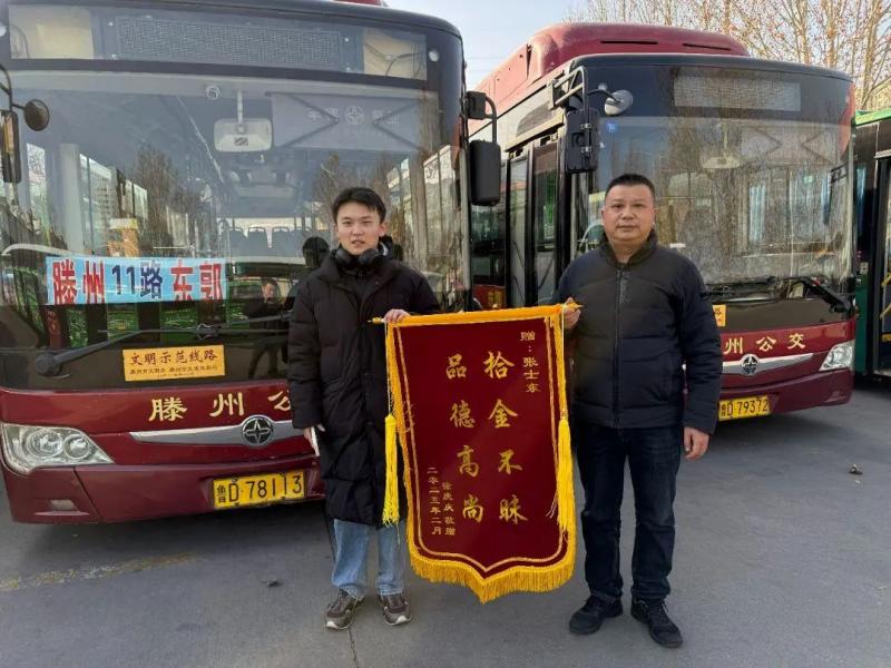 2月16日,市民徐女士將一面印有“拾金不昧 品德高尚”的錦旗,委托“跑腿”小哥專程送到交發(fā)集團公交一分公司工作人員手中,向11路駕駛員張士東師傅表示誠摯的感謝。