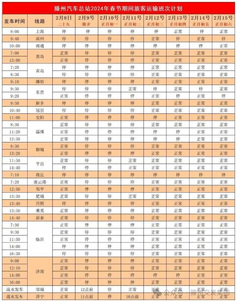 306路滕州—峭村:發(fā)車時(shí)間早7:00、晚15:30兩班,2月9號(除夕)、2月10號(初一)停運(yùn),2月11日(初二)恢復(fù)正常。